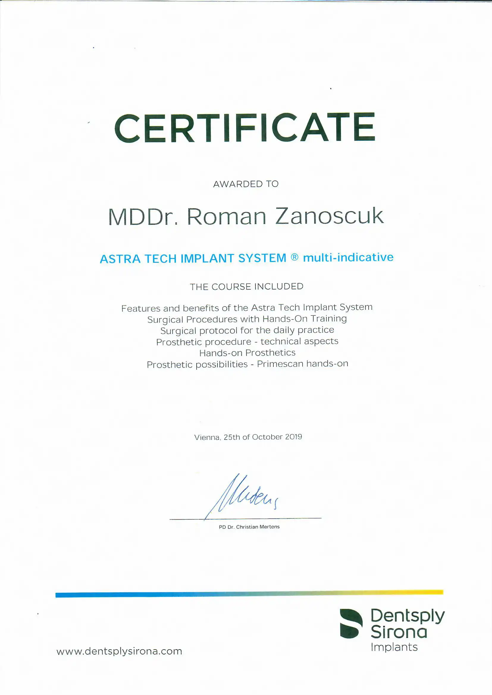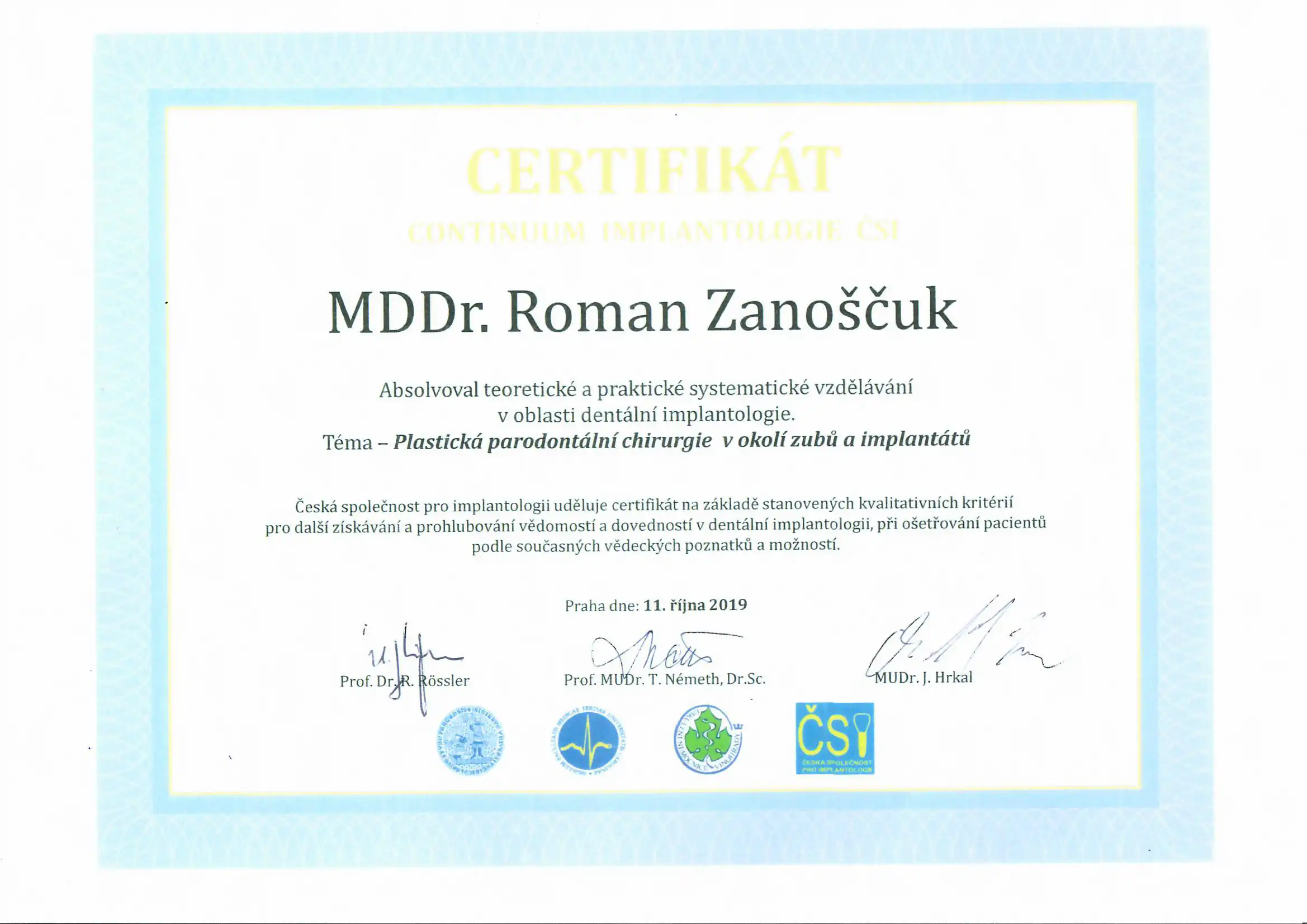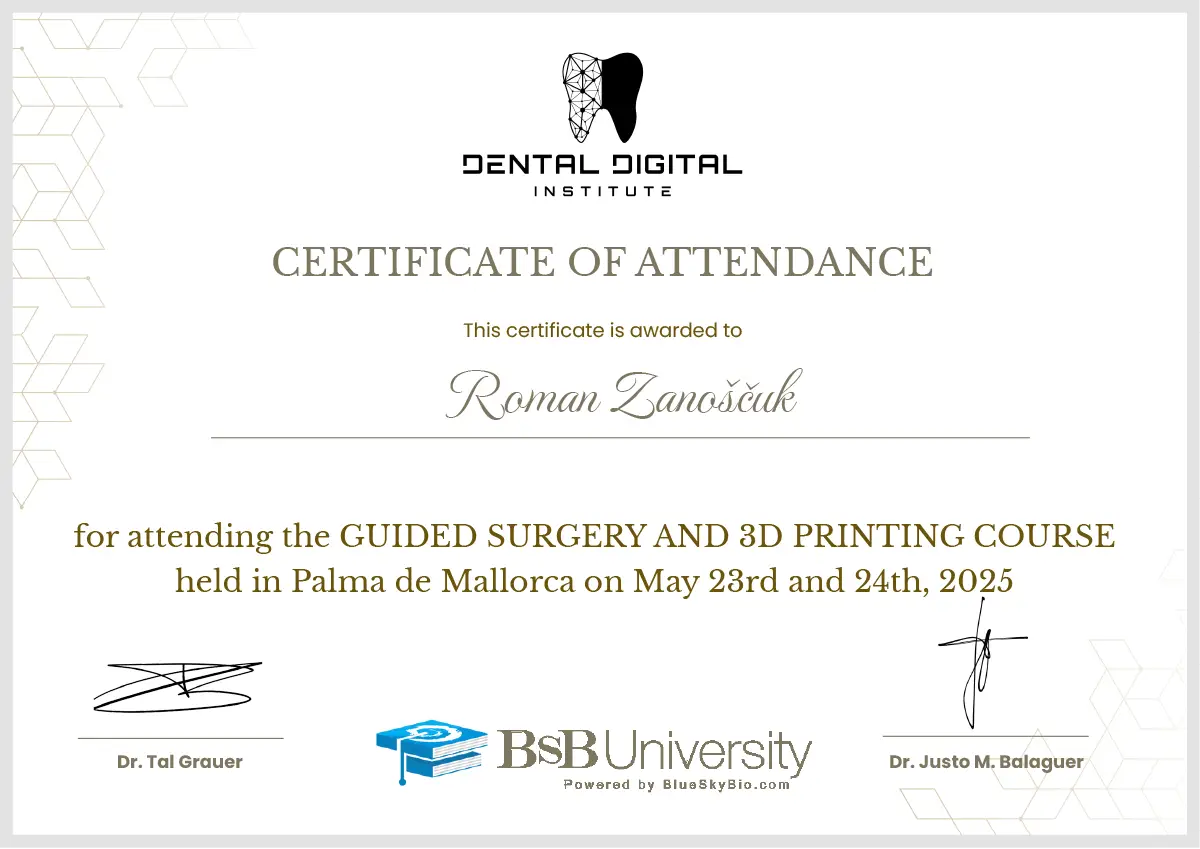 Neustále vzdělávání a nejmodernější postupy jsou pro nás prioritou – pravidelně, několik krát ročně cestujeme po celém světě a vzděláváme se přímo u největších světových odborníků na moderní implantologii na specializovaných kurzech a workshopech.
