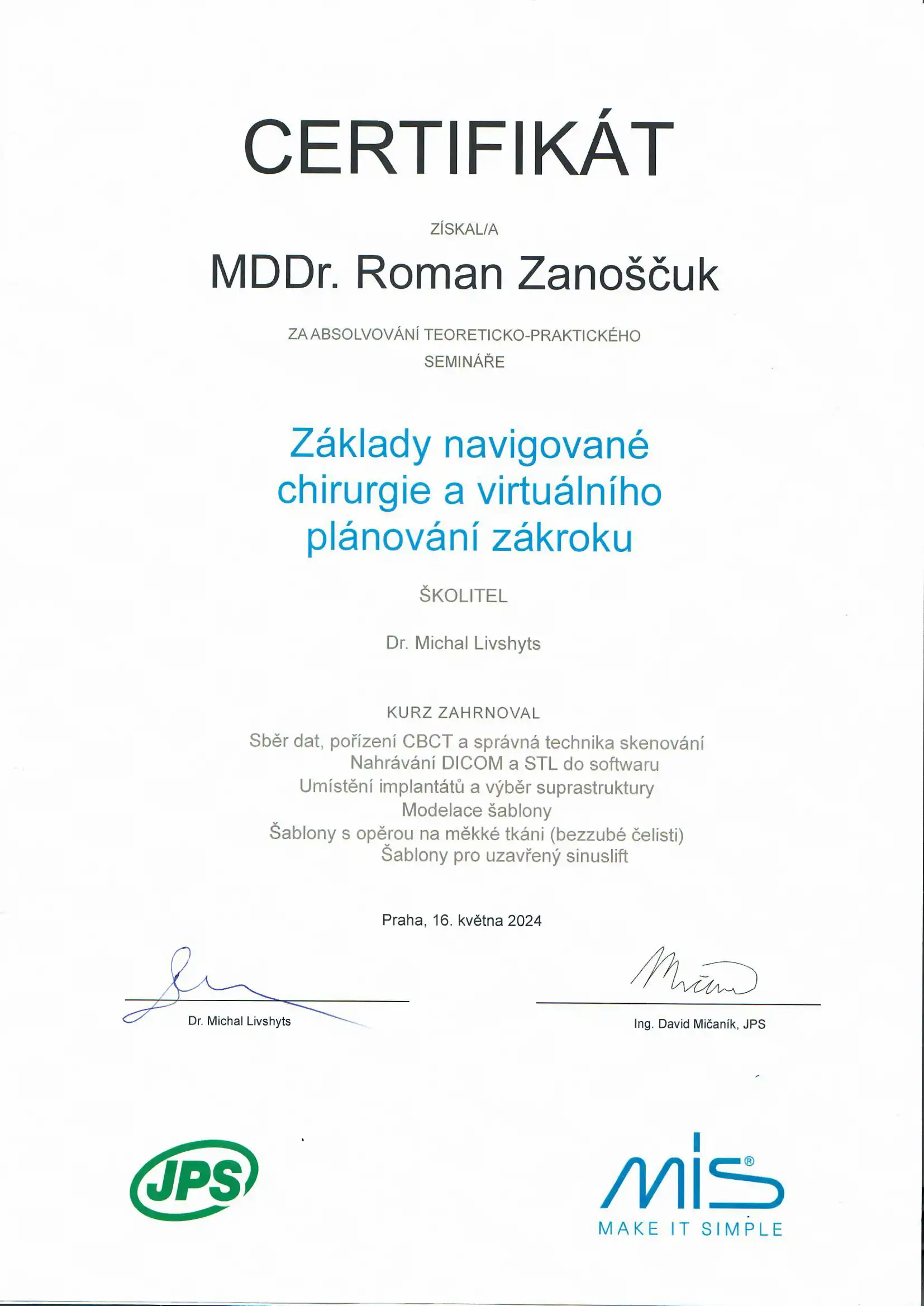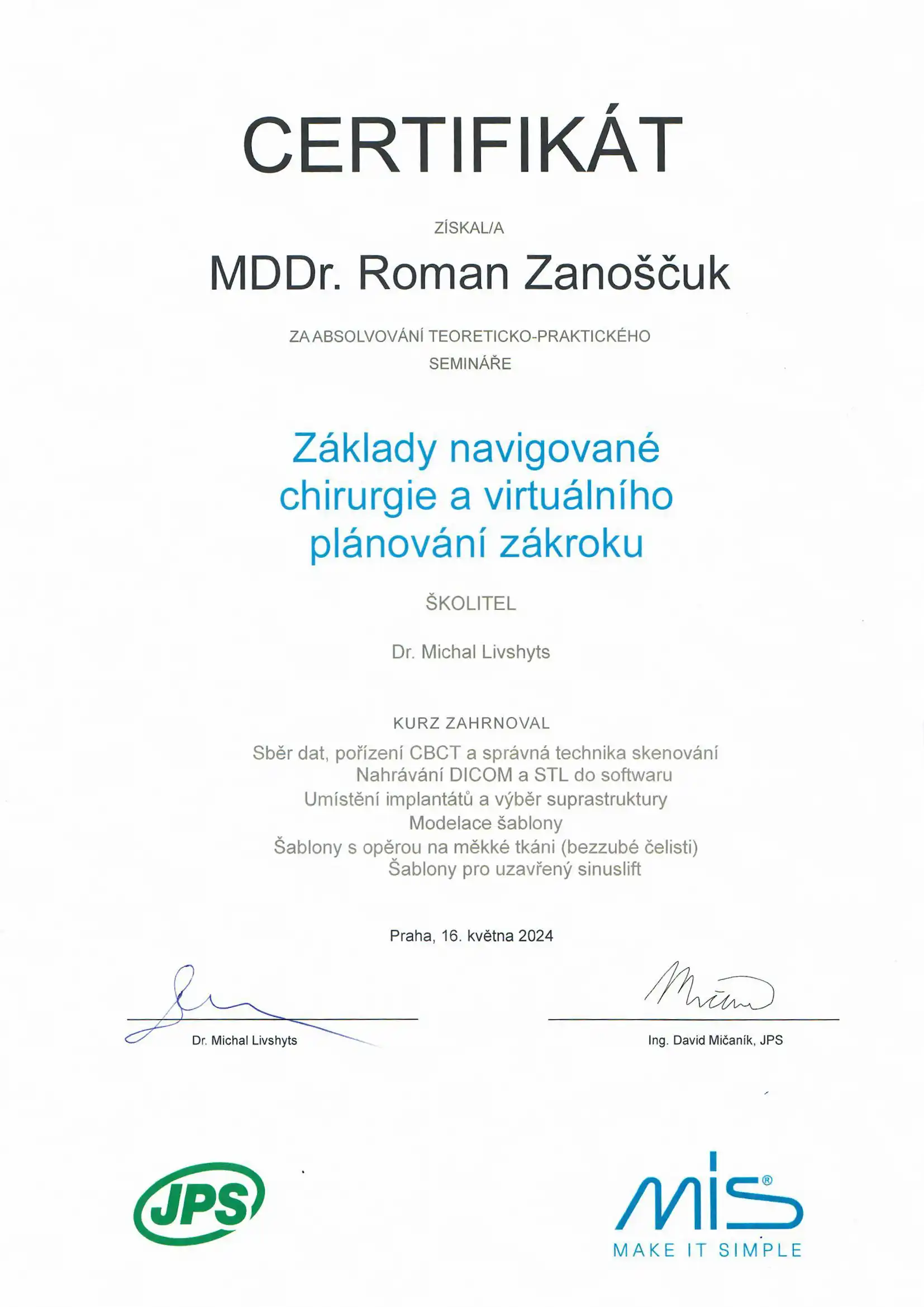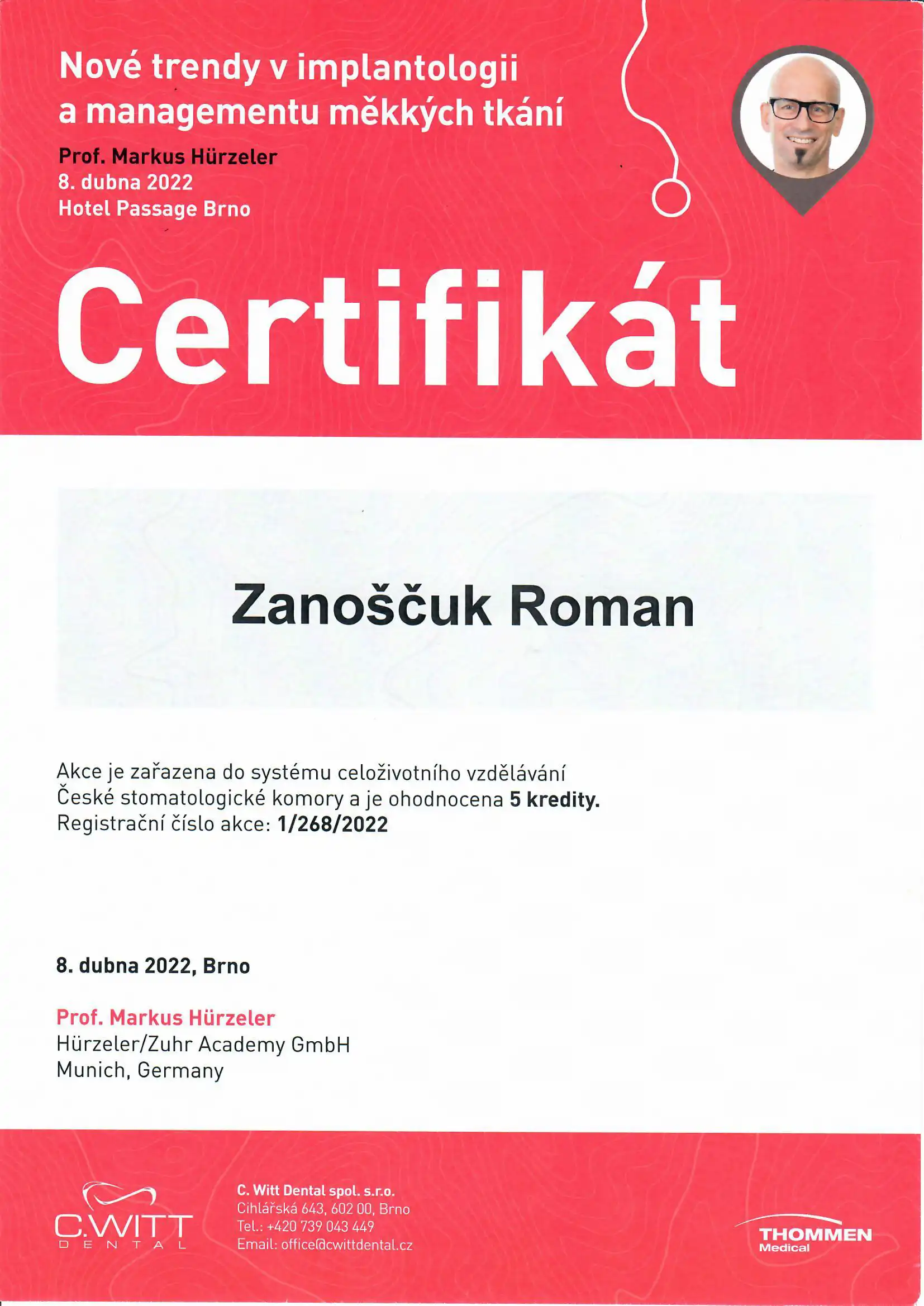 Neustále vzdělávání a nejmodernější postupy jsou pro nás prioritou – pravidelně, několik krát ročně cestujeme po celém světě a vzděláváme se přímo u největších světových odborníků na moderní implantologii na specializovaných kurzech a workshopech.